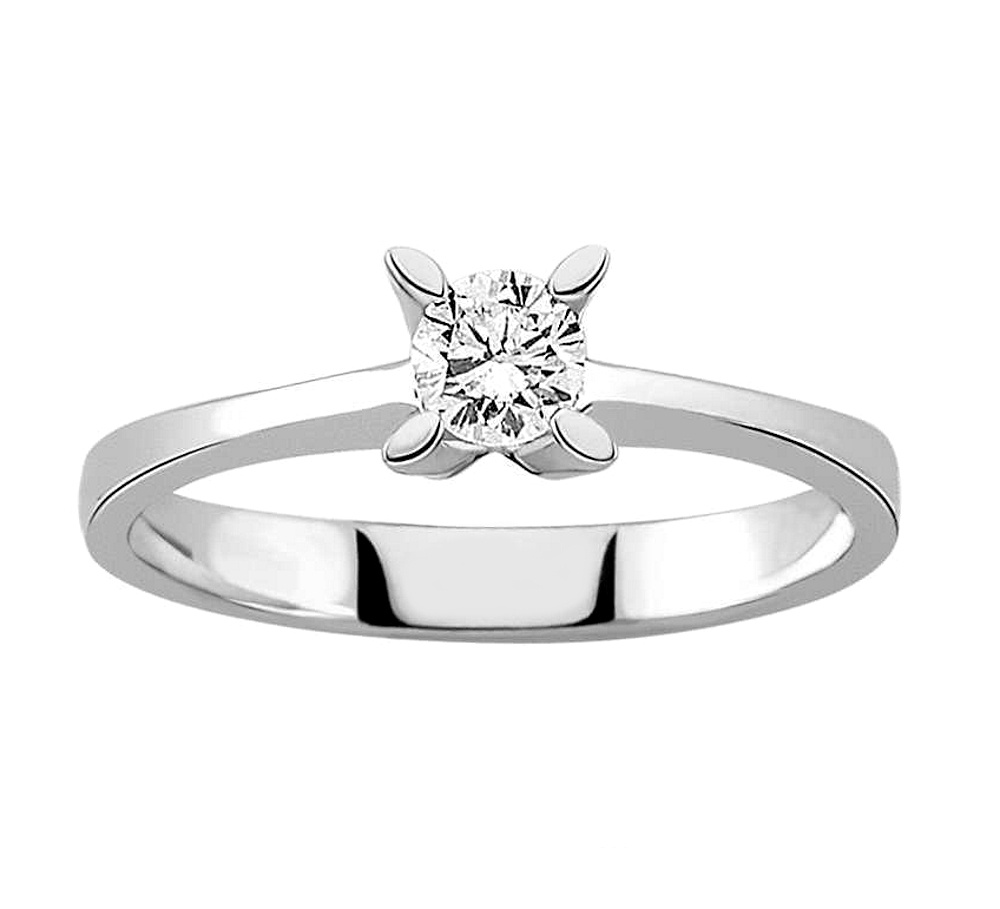 Edler Diamantring aus 585er Weißgold mit einem 0,30 ct Solitär gehalten von 4 Krappen, der perfekte Verlobungsring.