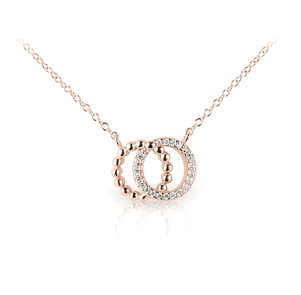 Apartes Collier aus rosévergoldetem Silber mit Zirkonia.